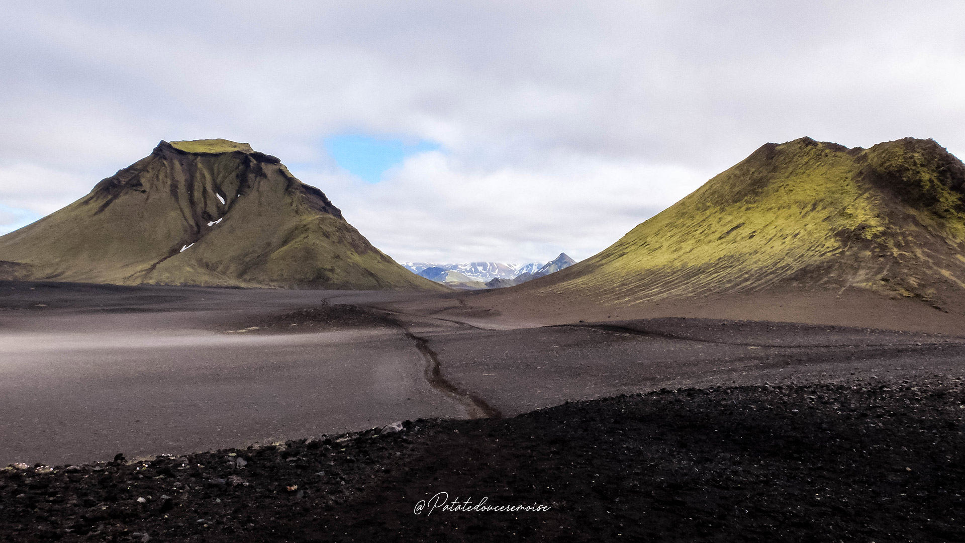 En ce 4ème jour de trek, nous quittons donc le refuge de Botnar et traversons un désert de sable noir. La montagne Hattfell domine le paysage.