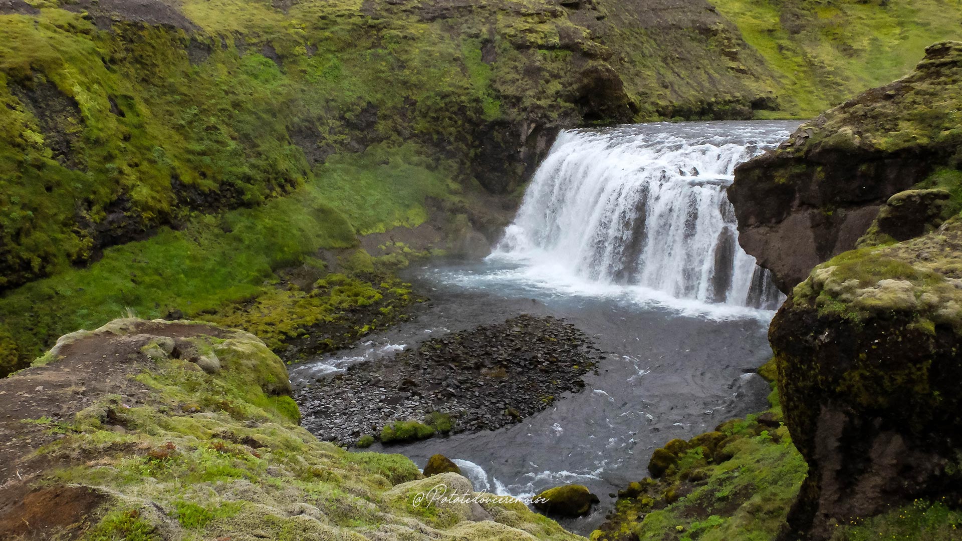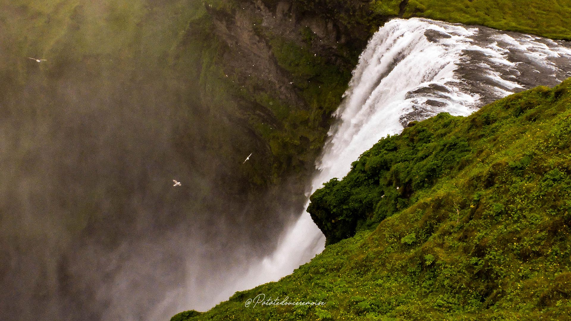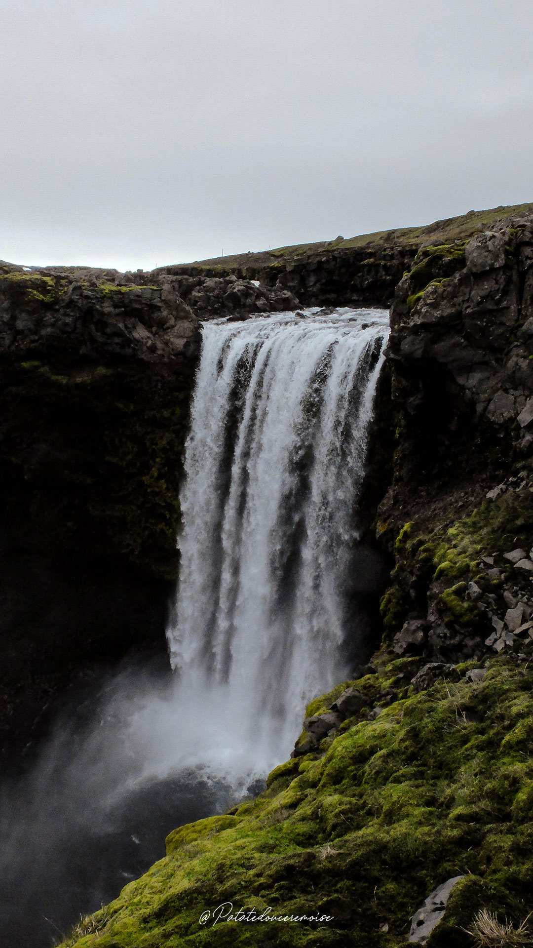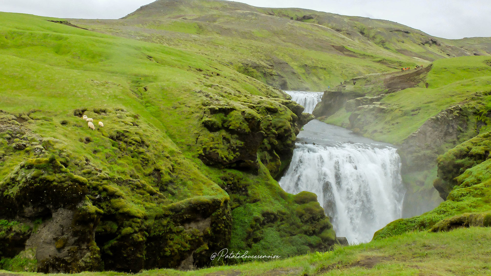 L’aventure commence aux pieds de l’impressionnante Skógafoss. Une trentaine de cascades se succèdent depuis le sommet de la montagne : cette même montagne que nous apprêtions à gravir !