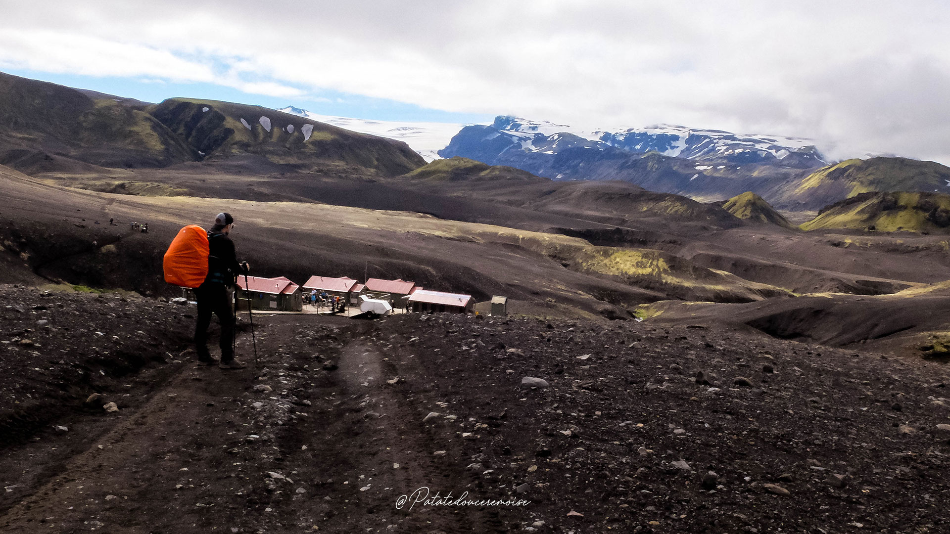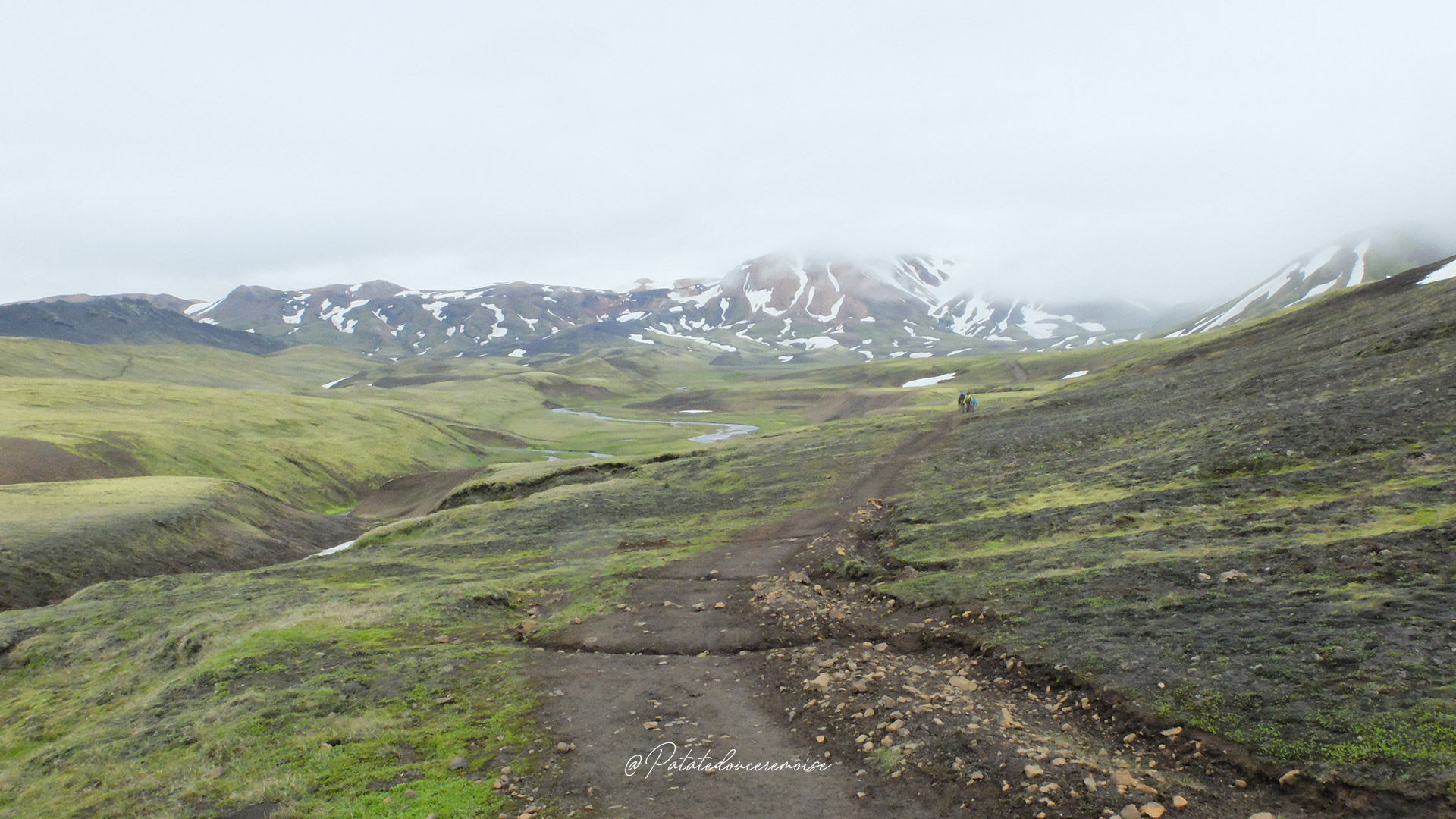 Le lieu est très touristique, nous nous retrouvons donc bien entourés en arrivant en bas. Après une semaine dans le calme et la solitude, c’est un petit choc. Il nous reste 2km avant d’arriver au refuge de Landmannalaugar, la dernière étape de notre périple. La pluie s’invite, mais elle ne viendra pas entacher notre satisfaction !