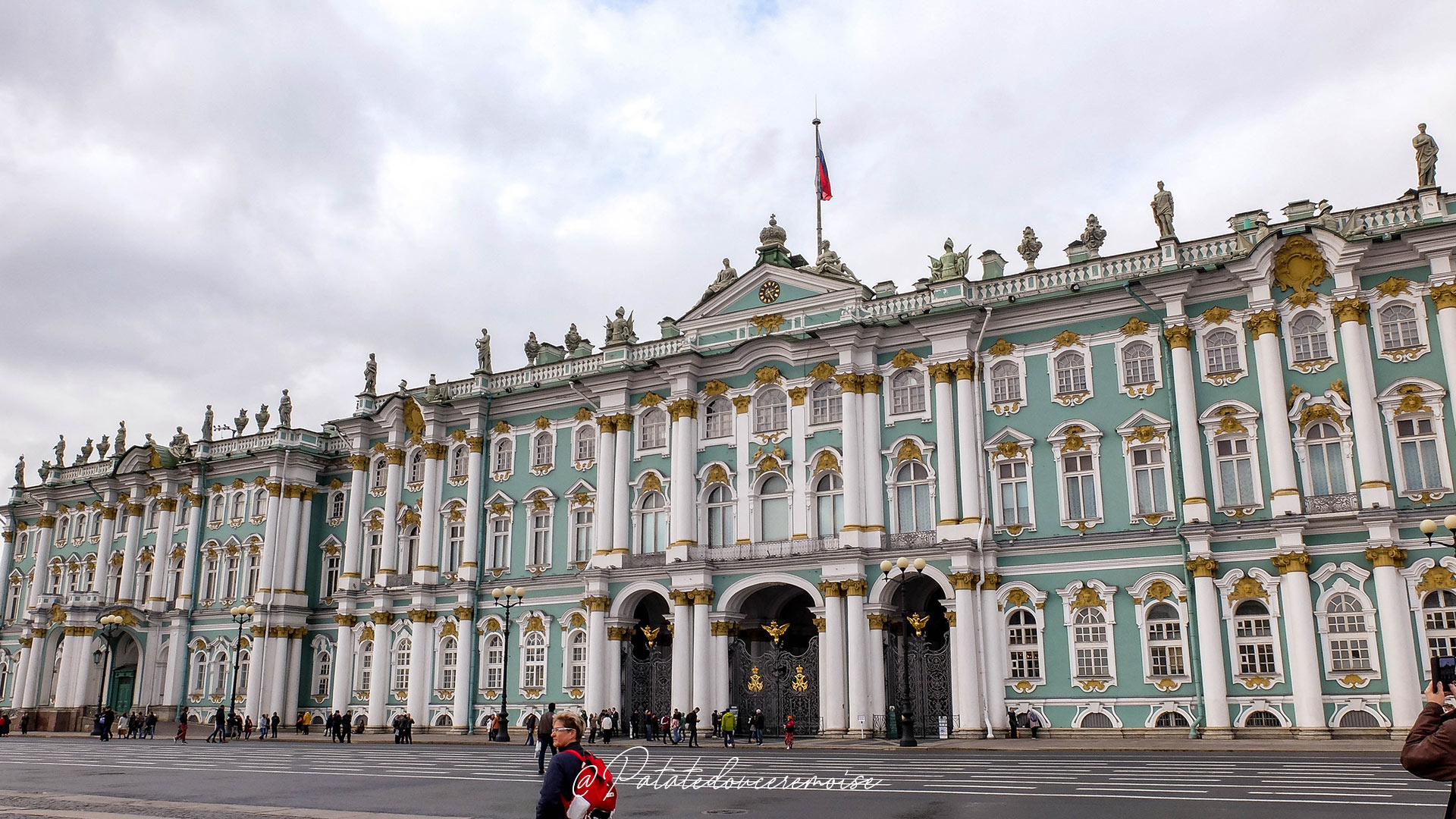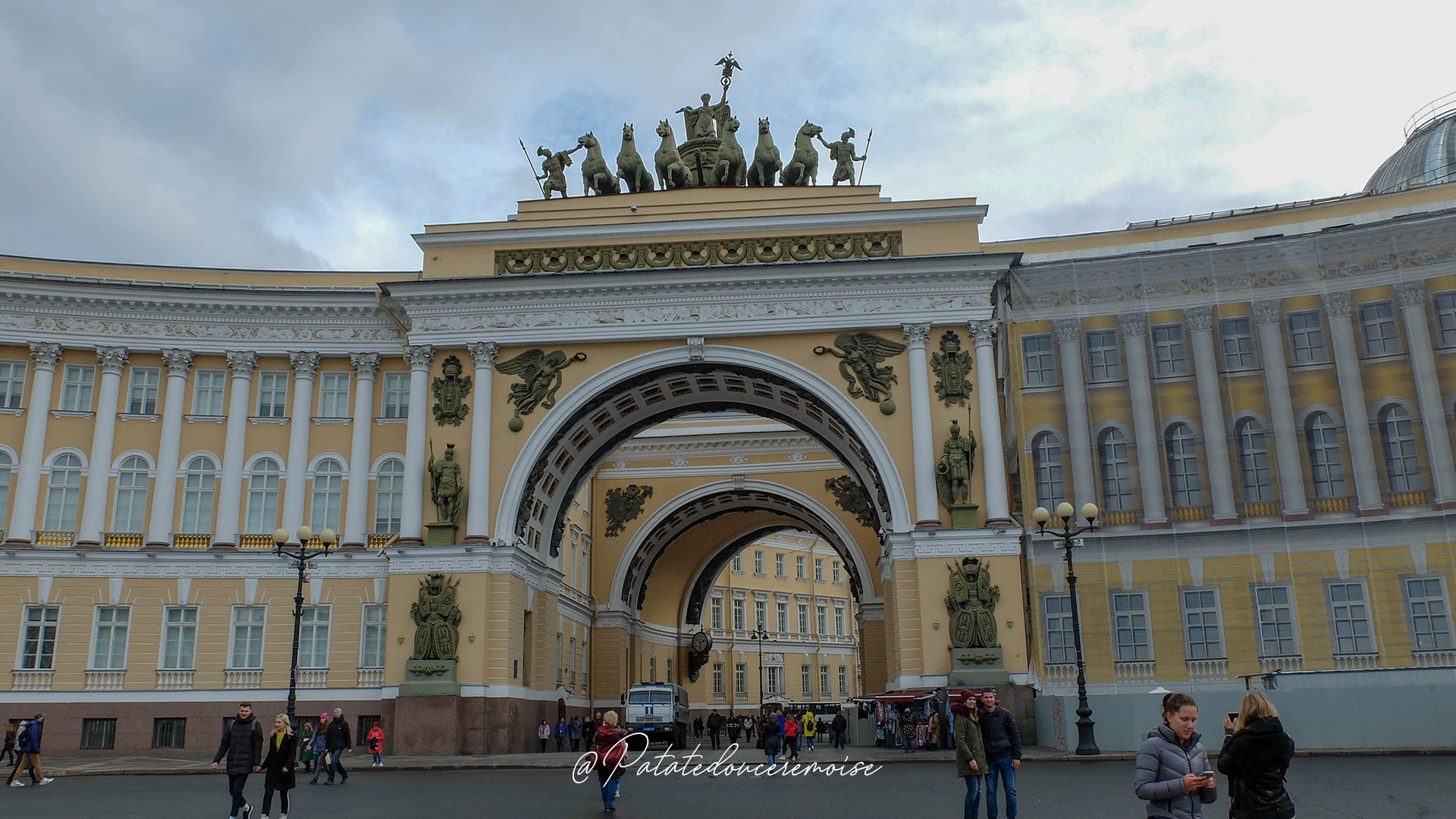 Comment faire une escapade à Saint-Pétersbourg sans passer par la Place du Palais? La Place Rouge de Moscou est immense, la Place du Palais de Saint-Pétersbourg l’est tout autant. Le bâtiment jaune-oranger avec sa façade classique c’est l’État major des armées. De l’autre côté, le vert de la façade baroque du Palais d’Hiver lui répond. Au centre, se dresse la colonne Alexandre, la plus haute du monde (47m).
