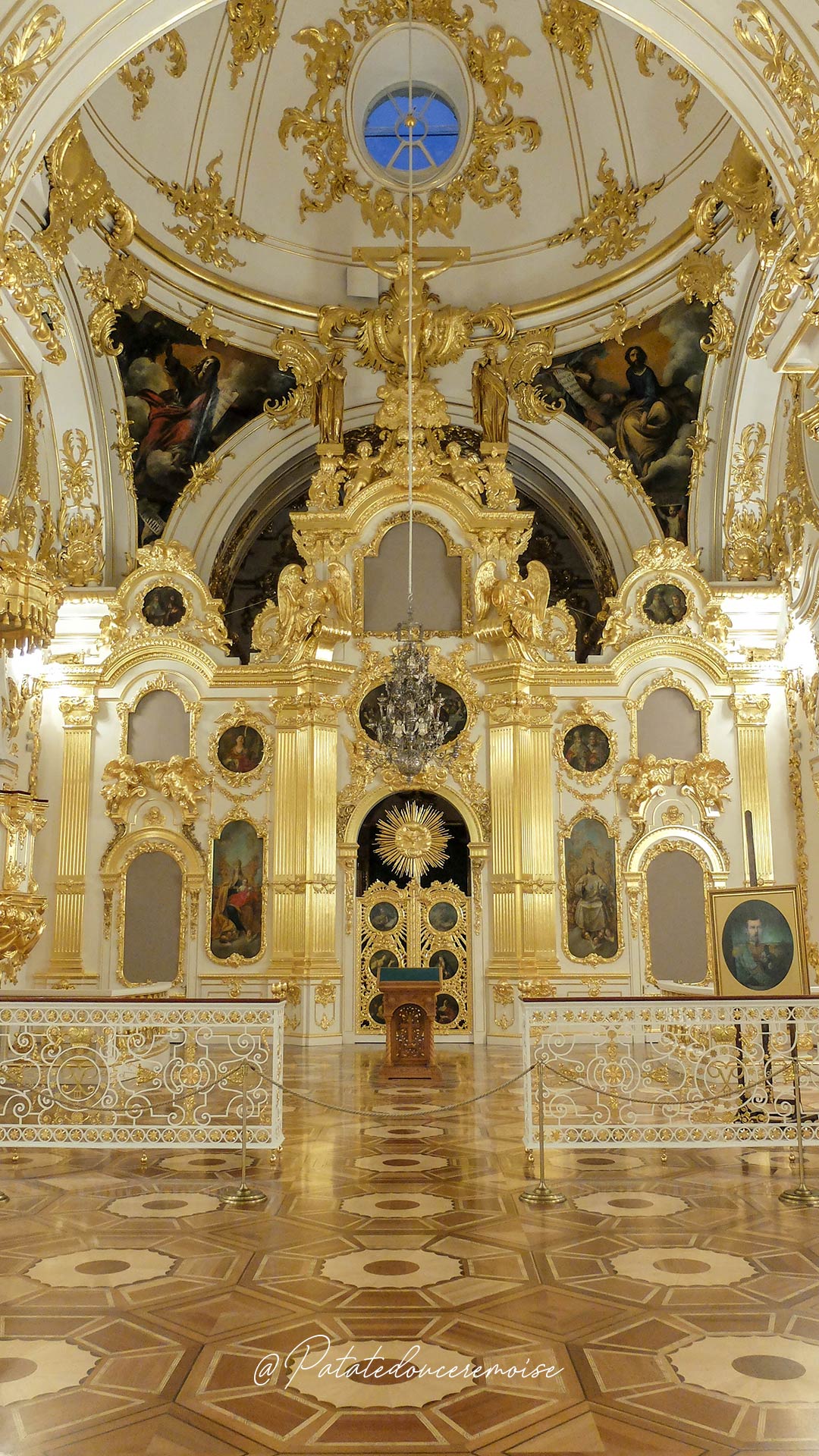 L’intérieur est somptueux, il y a des dorures partout et des détails dans chaque recoin. Je n’avais pas vraiment préparé ma visiter, je souhaitais juste voir les appartement des tsars. Je crois que j’ai passé ma visite le nez en l’air à admirer les plafonds peints et sculptés, les lustres, les voutes, etc.