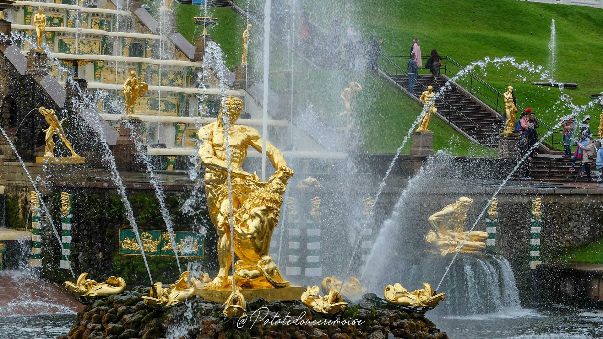 Résidence des tsars jusqu’en 1917, le Palais Peterhof est classé au patrimoine mondiale de l’UNESCO. Il se trouve à 30km de Saint-Pétersbourg, on peut s’y rendre par minibus ou bien par bateau depuis l’Amirauté (mais c’est beaucoup plus cher). J’ai choisi de visiter uniquement les jardins, ils sont déjà très vastes il y a de quoi s’occuper. Afin d’éviter la file d’attente à l’entrée, j’ai réservé mon billet en ligne avant ma visite. À mon grand regret, le soleil n’était pas au rendez-vous, le spectacle n’en restait pas moins impressionnant.