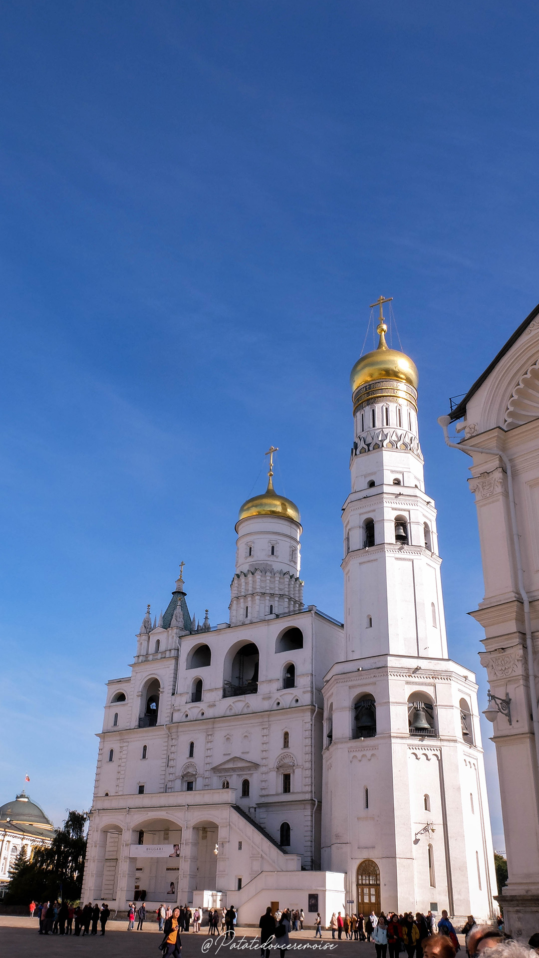 • Enfin, à côté de ces chefs d’œuvres architecturaux, le Clocher d’Ivan-le-Grand culmine à 81m. Il compte 21 cloches dont la plus lourde du monde (La Reine), qui est posée à ses pieds.