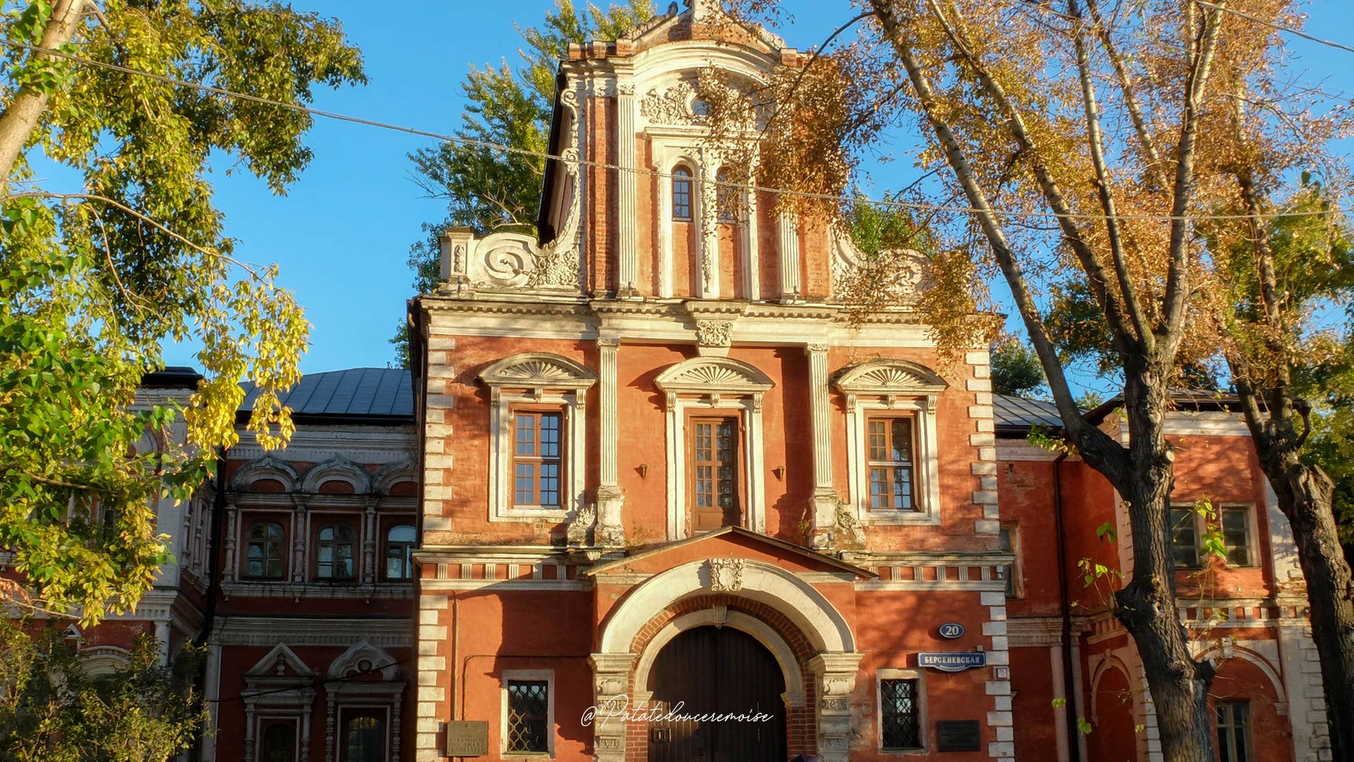 Ma promenade commence sur les quais Bolotnaïa aux pieds d’une ancienne chocolaterie aujourd’hui reconvertie en magasins et restaurants en tous genres. La brique rouge de ce bâtiment a de jolis reflets au couché du soleil.  Je remonte tranquillement la Moskva en direction du Kremlin et me laisse transportée par le décor… Après quelques minutes de marche, le Kremlin est en vue!