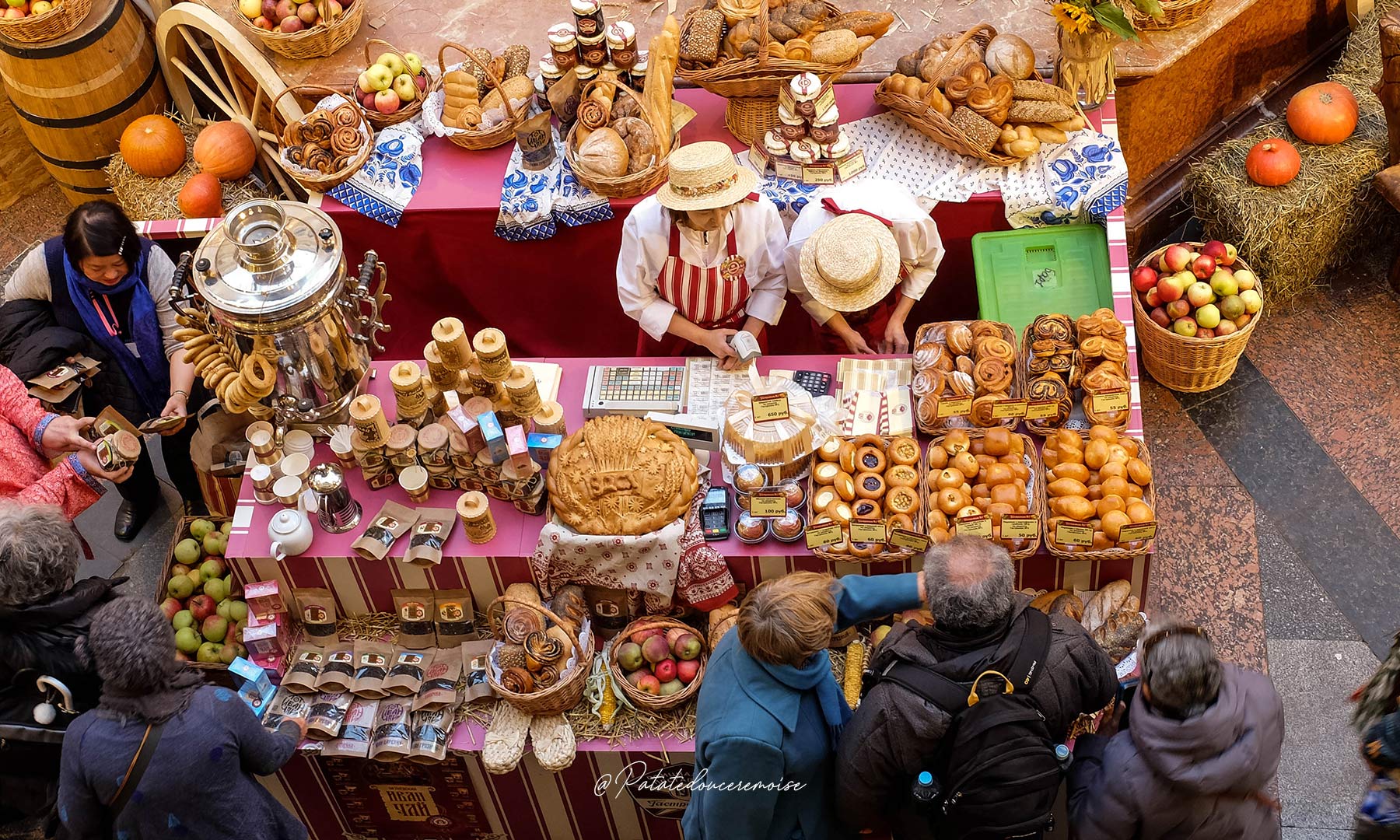 Le bâtiment est organisé sur trois niveaux, des petites passerelles vous permettent de passer d’un côté à l’autre de la galerie. Au centre, un stand à thème est aménagé selon les périodes de l’année. Quand je suis passée, c’était l’automne: il y avait une structure ornée de blé et de fruits d’automne. Même si vous n’achetez rien, cela vaut quand même la peine de faire un petit détour.