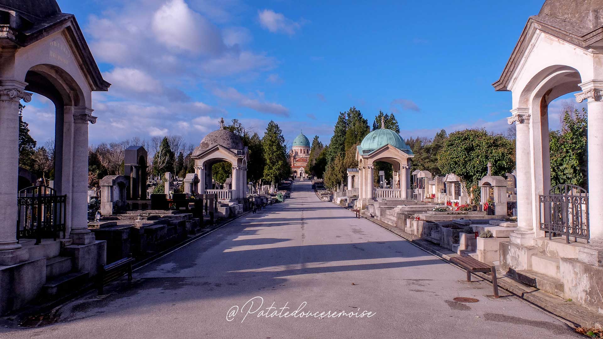 Légèrement à l’écart du centre historique de Zagreb, le cimetière de Mirogoj est un des plus beaux d’Europe. Les tombes sont encerclées de splendides arcades surmontées de leurs dômes. Nous nous sommes promenés dans les longues allées entre les tombes toutes plus décorées les unes que les autres. Sur les sépultures plus anciennes, le temps a fait son oeuvre et le lierre est venu recouvrir les statues, les noms, les photos de leurs occupants.