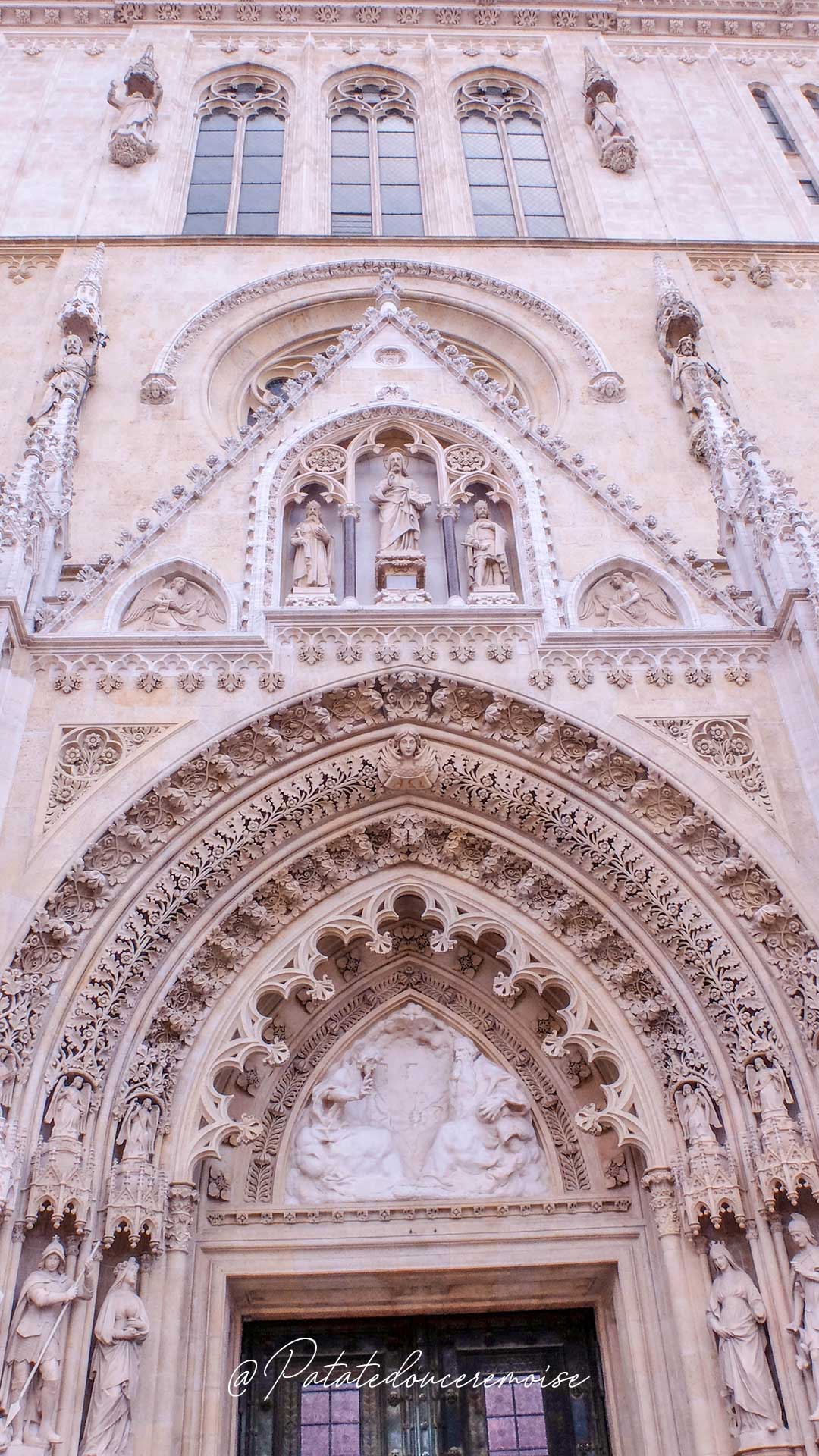 Comment ne pas remarquer cet édifice qui surplombe toute la ville ? Si vous visitez Zagreb et sa vieille ville, vous l’apercevrez de loin. Autrefois ceinte de remparts, la cathédrale fut construite au 13ème siècle puis reconstruite au 19ème siècle après un séisme. Elle très belle avec ses deux tours finement sculptées: elles lui donnent un côté royal. Malheureusement, ces 30 dernières années elle a dû subir de nombreuses rénovations. En effet, à l’époque de Hermann Bollé (son architecte) au moment de la reconstruction, on utilisait des pierres de mauvaise qualité. C’était particulièrement le cas pour les nouveaux clochers et la façade occidentale. Il est donc presque impossible de la voir sans échafaudage, mais cela ne lui retire pas son charme.