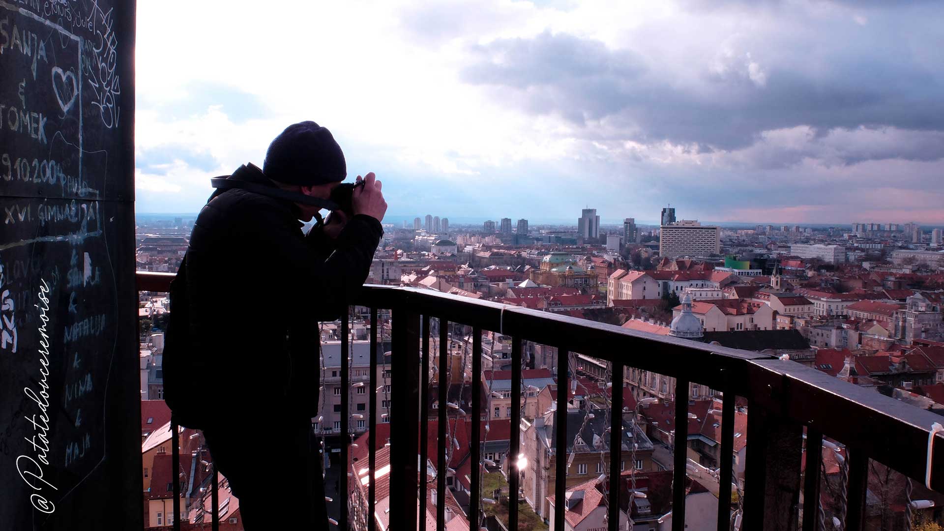 Alors que nous déambulons dans les rues du centre historique de Zagreb, nous apercevons cette tour, trônant fièrement au bout de la promenade Strossmayer. Des personnes se promènent sur une passerelle, arrimée au toit. On se dit que cette visite de Zagreb à 360° ne doit pas être mal ! Après nous être délestés de 20 kunas chacun (e. 2,70€) nous entamons la montée qui nous amènera à la passerelle.