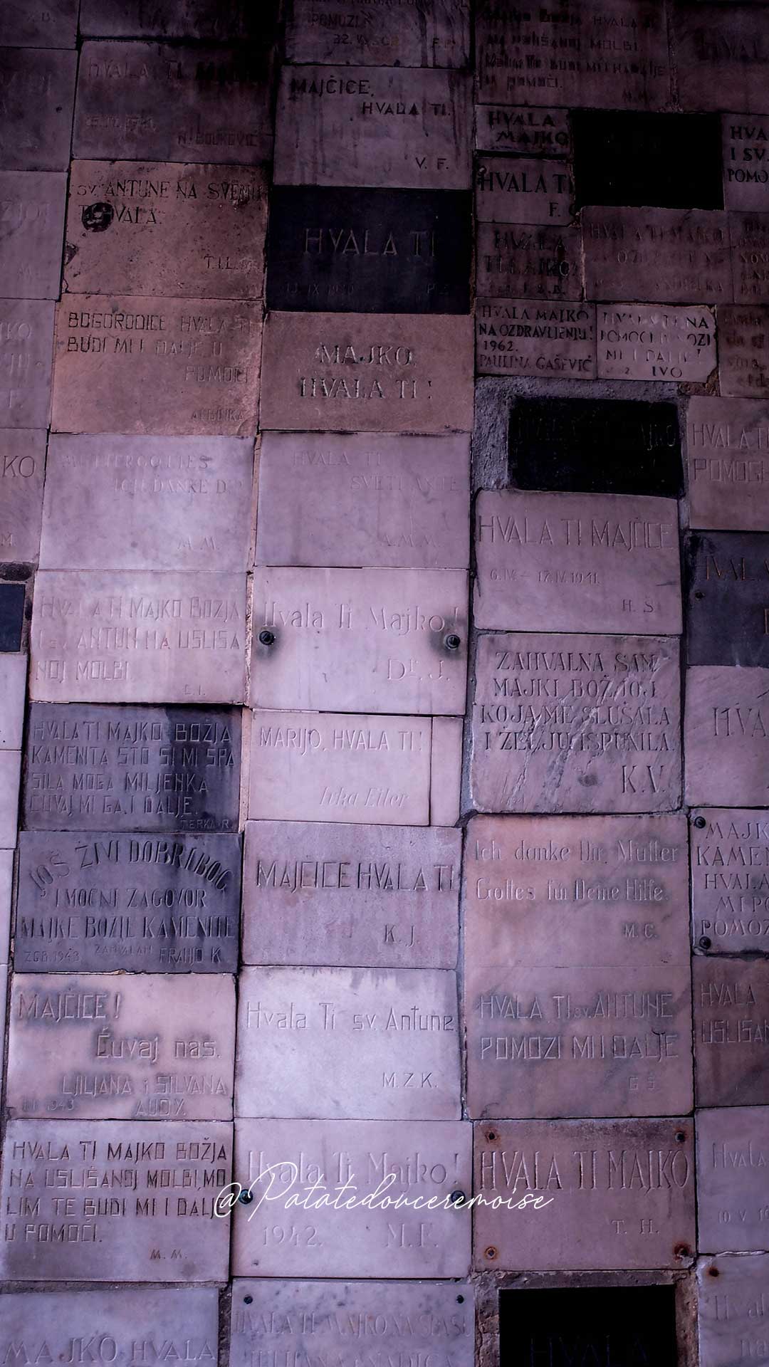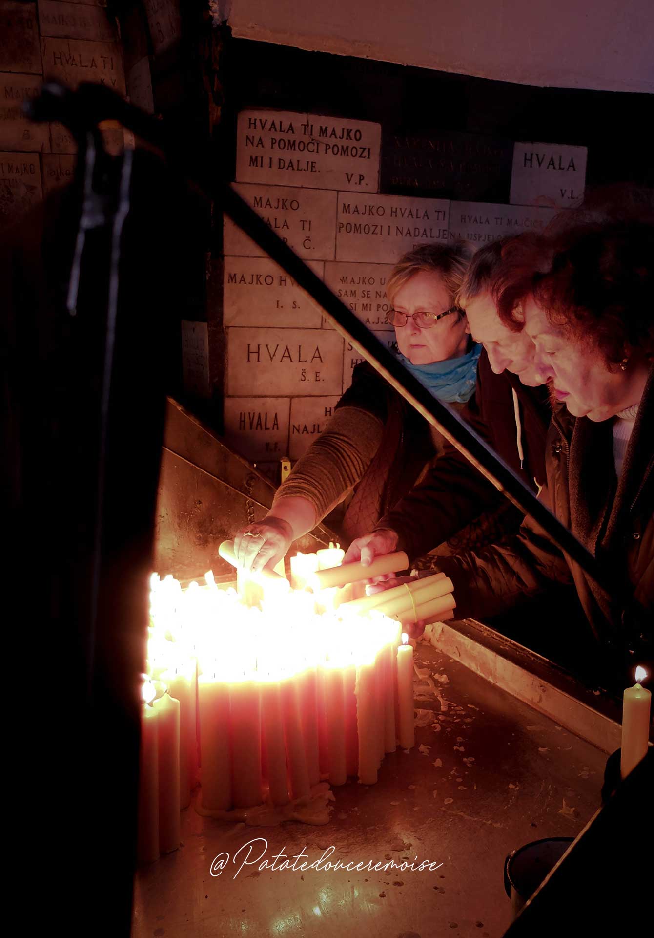 Au 18ème siècle, un grand incendie ravagea la colline de Gradec. Des cinq portes de la colline, la seule qui résista fut la porte de Pierre et son tableau de Madone. Depuis cet épisode, les Zagrebois vénèrent cette porte. De nombreux ex-voto sont accrochés ici, remplis de merci. Nous sommes passés plusieurs fois aux heures de prières, il y règne une ambiance vraiment particulière. On sent que ce lieu compte pour les Zagrebois !