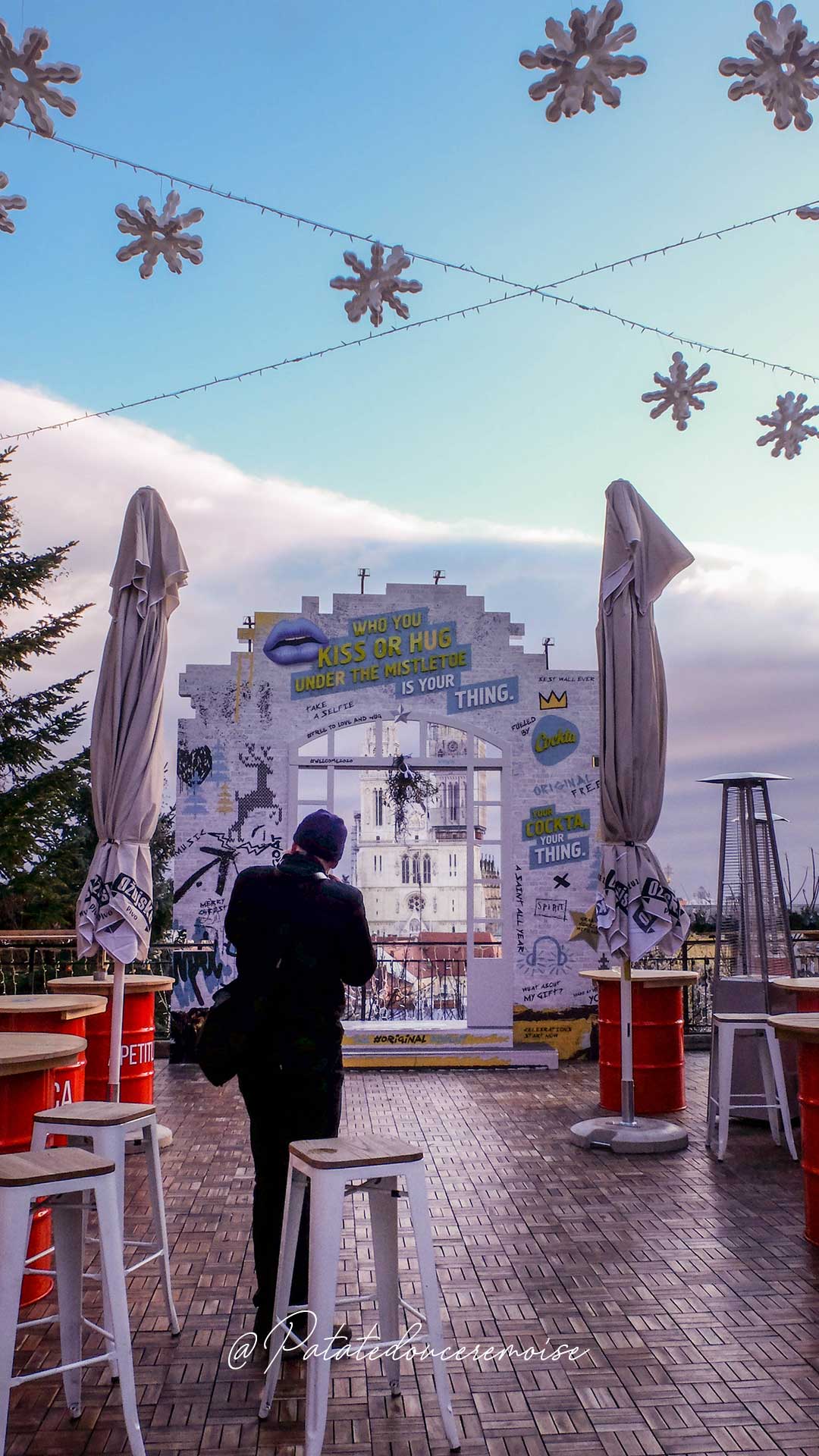 Nous y sommes passés plusieurs fois, la première en pleine journée et la seconde assez tôt le matin du deuxième jour. Je dois dire que j’ai préféré cette deuxième promenade, car il n’y avait personne. Le marché de Noël situé sur la promenade Strossmayer était bondé la veille et absolument vide ce matin-là. Nous avons donc pu observer plus en détail les décors, et surtout la vue.
